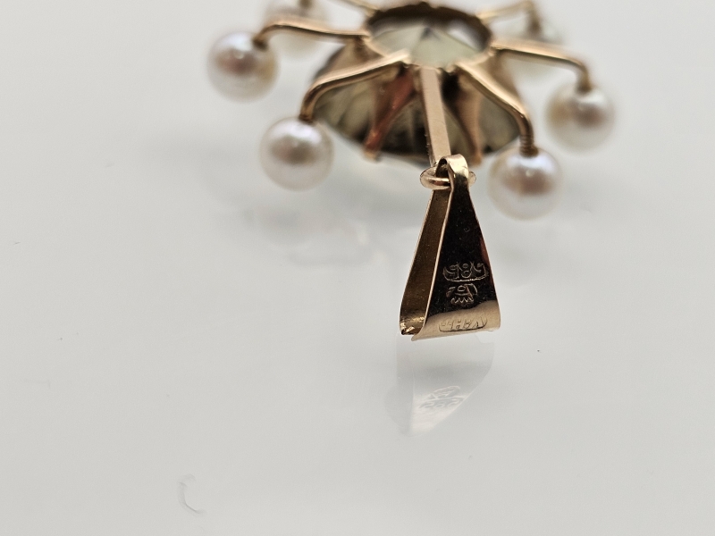 #1270 14k kultainen riipus helmillä, 4,11g