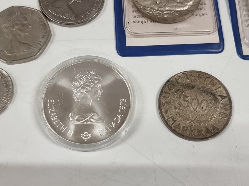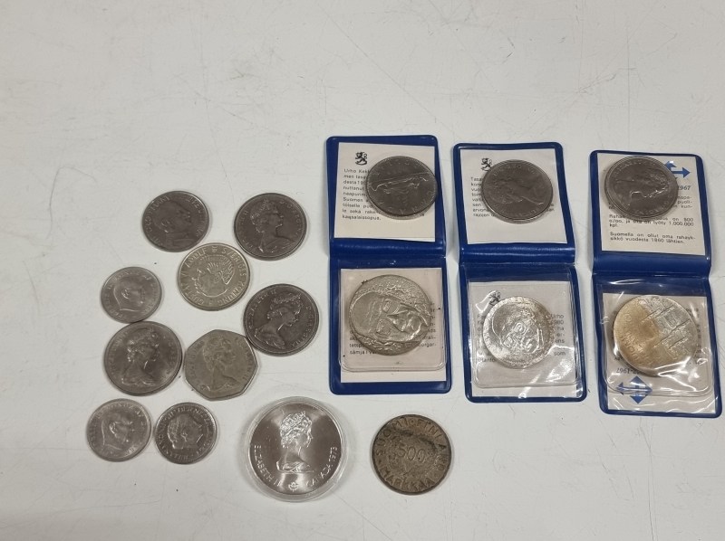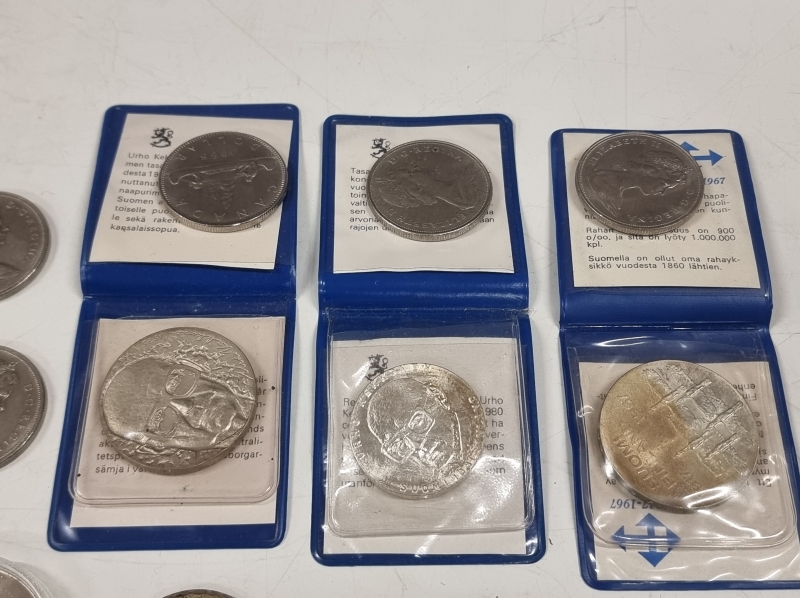 #1272 - Erä kolikoita, 5kpl hopeisia: Mm. 1952 Olympia hopeisten paino 103g. 500h 55g, 900h 24g, 925h 24g
