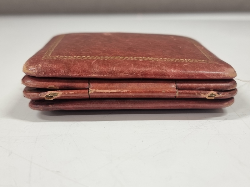 Tuntuisi toimivan lyhyessä testissä. Nahkaosissa kulumaa. Kotelon mitat 9,5cm x 9,5cm