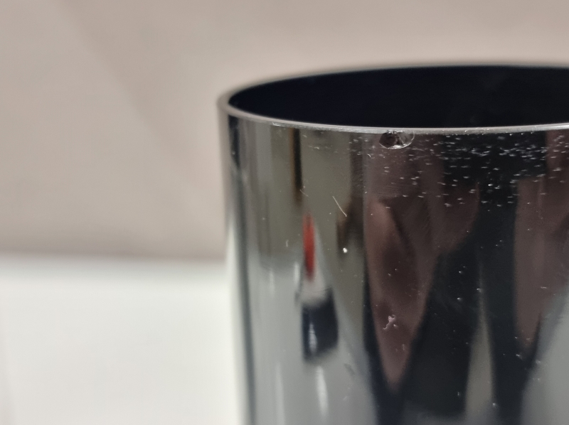 Valmistaja: Riihimäen lasi oy. Korkein: 21,5cm. Toisessa mustassa maljakossa reunavika. Kirkkaassa maljakossa likaa sisällä.