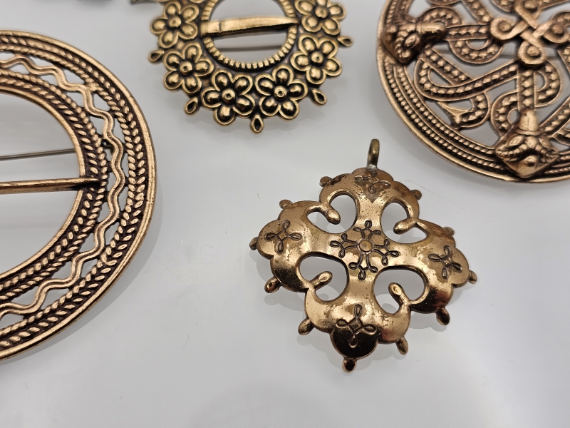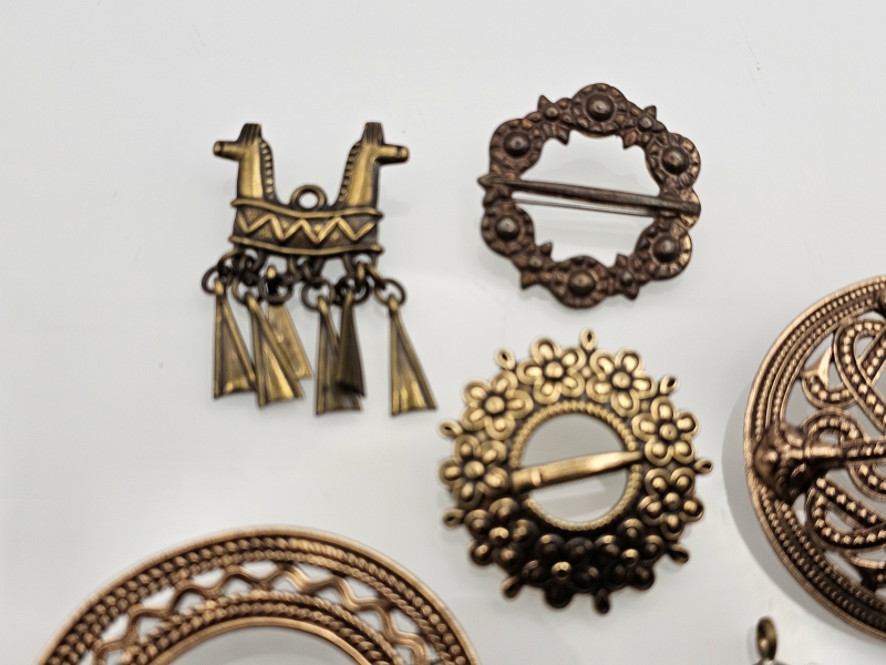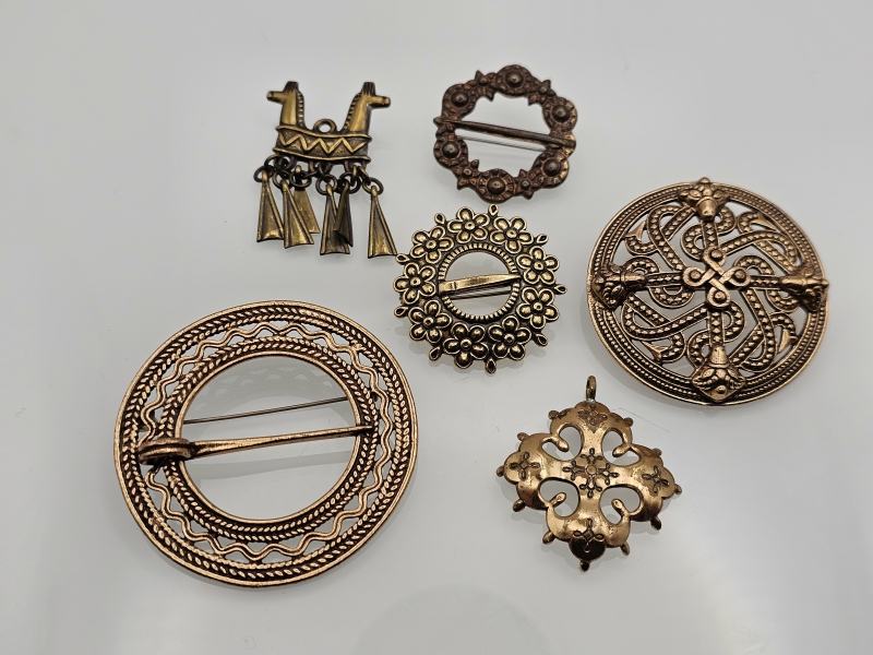 #1295 - 6kpl Kalevala koru rintakoruja, mm. Kaksipäinen hevonen