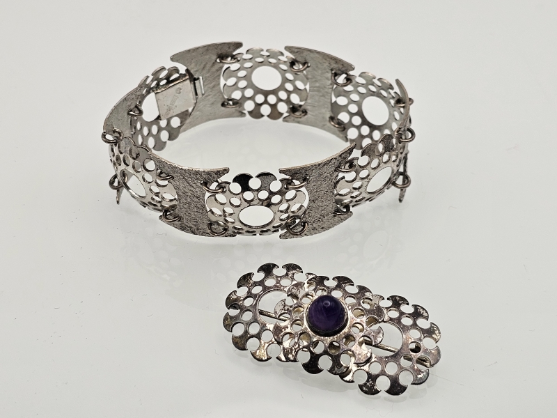 #1308 - Kotimainen hopeinen rintakoru ja rannekoru vuodelta 1969