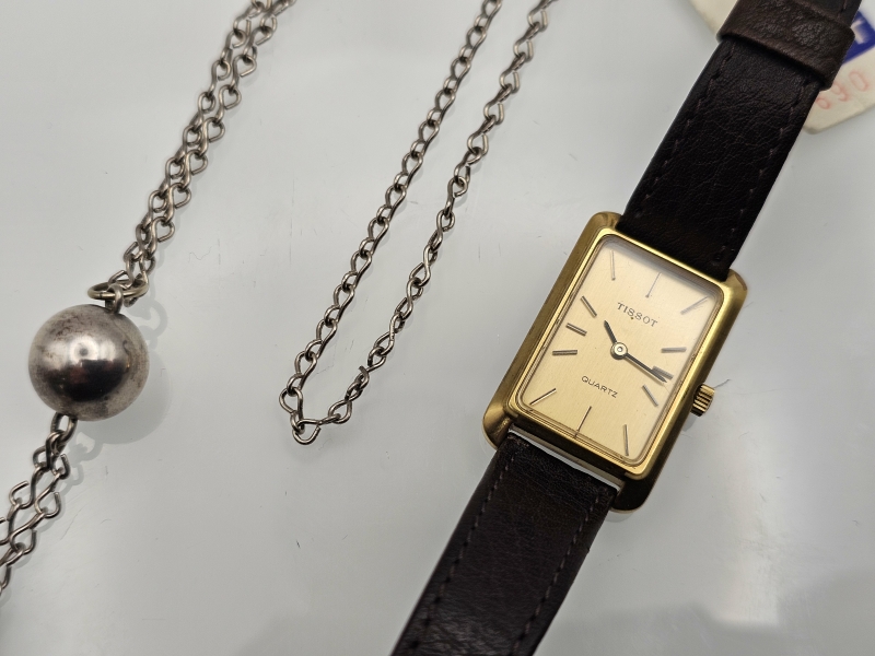 #1311 - Aarikka hopeinen kaulakoru + Tissot Quartz rannekello