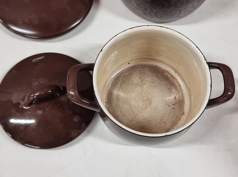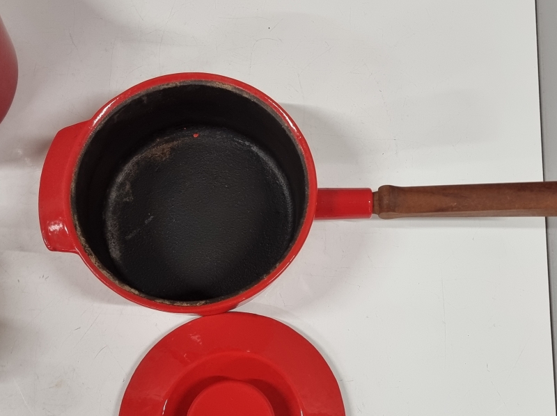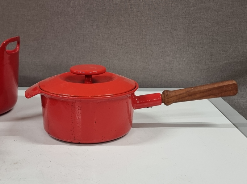 #2086 2kpl valurautaista pataa, mm. Antti Nurmesniemi, Lentävälautanen + 2kpl Finel kattilaa