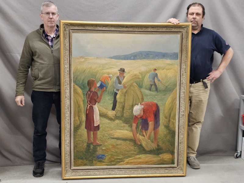 #1794 Isokokoinen öljyvärimaalaus, Kaapo Rissala [s.1900, k.1971], "Elopellolla"