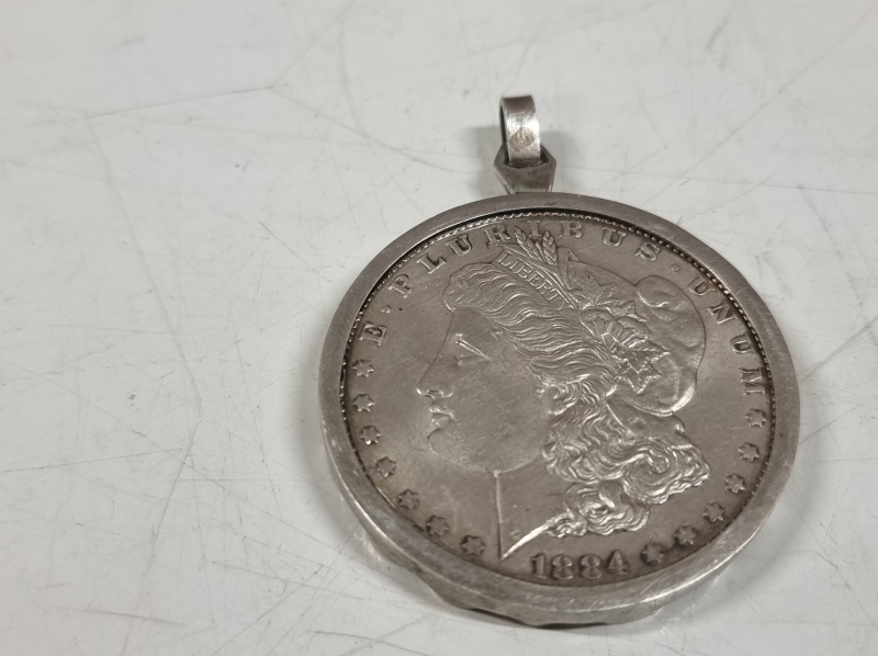 #2026 Erä hopeakolikoita, mm. Morgan - hopeadollari 1884, br. 57g