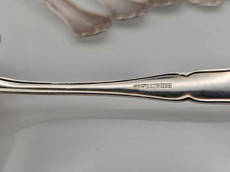 #1348 4+4kpl hopeisia chippendale kahvilusikoita, 830h, 94g