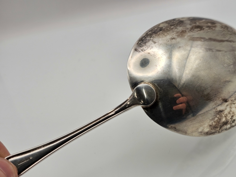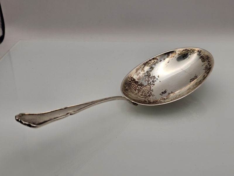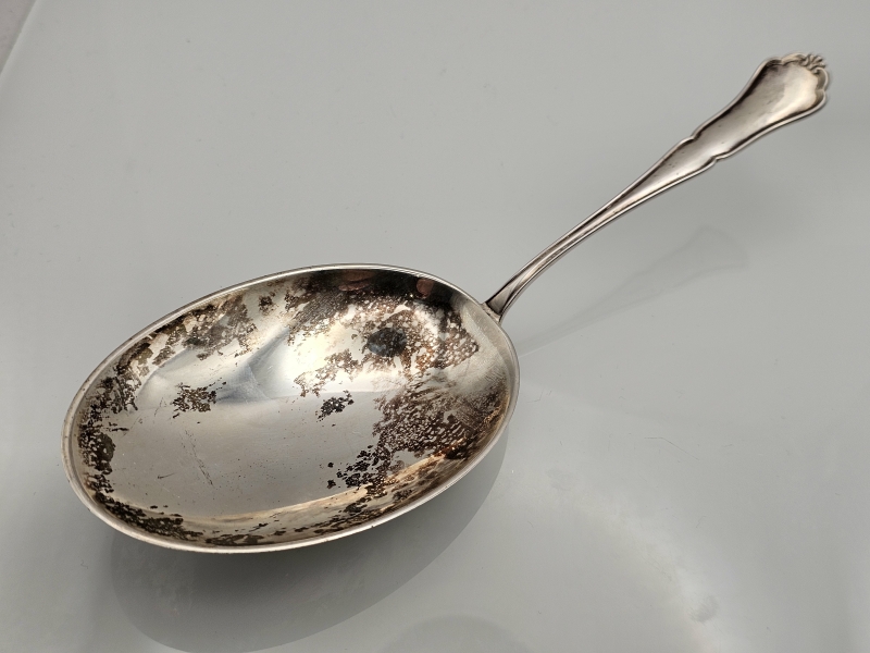#1349 Hopeinen chippendale -lusikka isolla pesällä, 830h, 108g