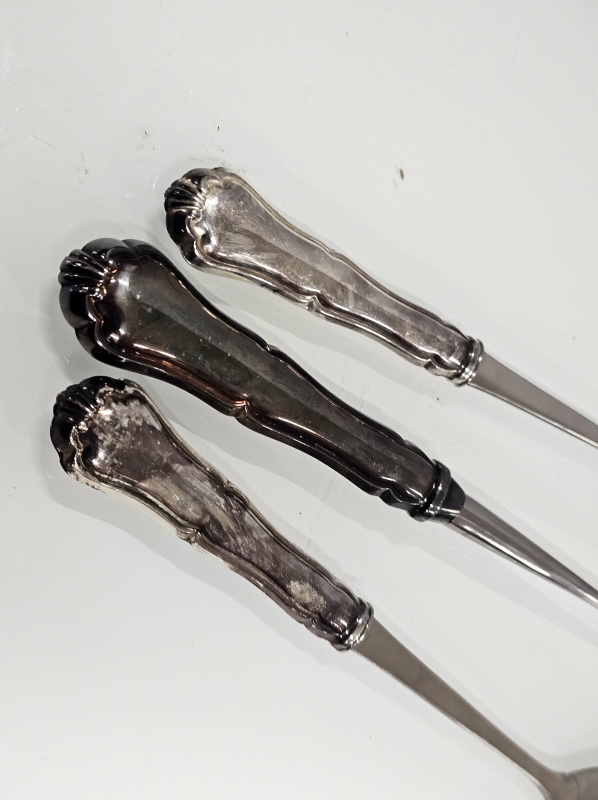 #1353 - Hopeiset chippendale salaattiottimet & iso kauha, 830h, br. 309g