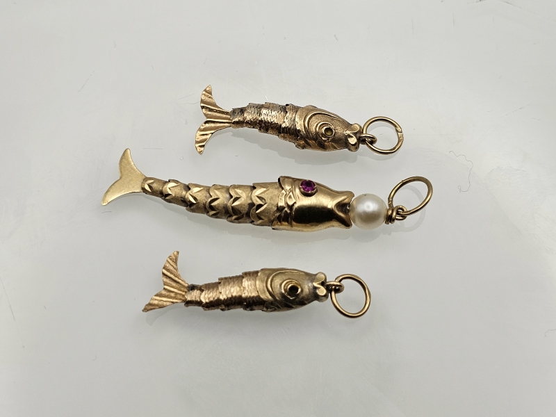#1402 1+2kpl 14k kultaisia kala-riipuksia, 4,54g