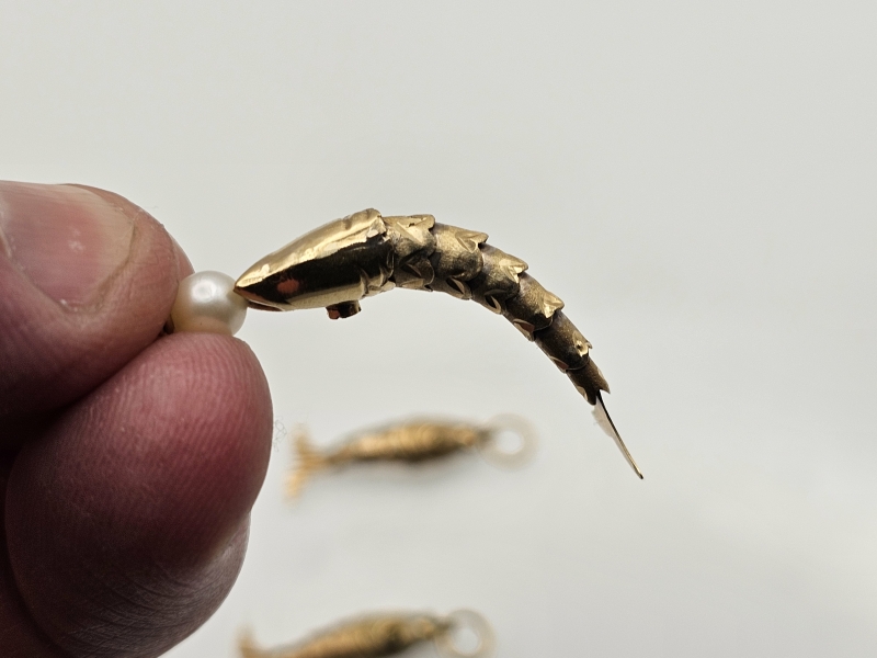Kalojen bruttopaino 4,54g. Pisin lenkin kanssa 47mm. Kalojen pyrstöt liikkuvat liikkeessä