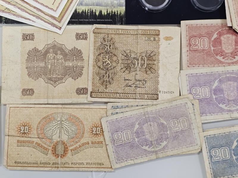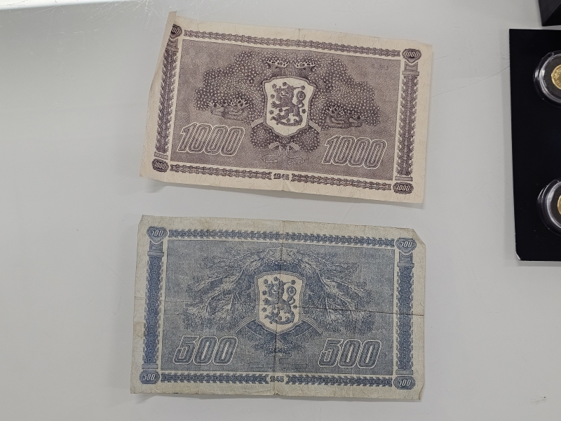 #1374 Erä vanhoja rahoja [mm. 1000mk 1945], Mannerheim -kokoelma ym.