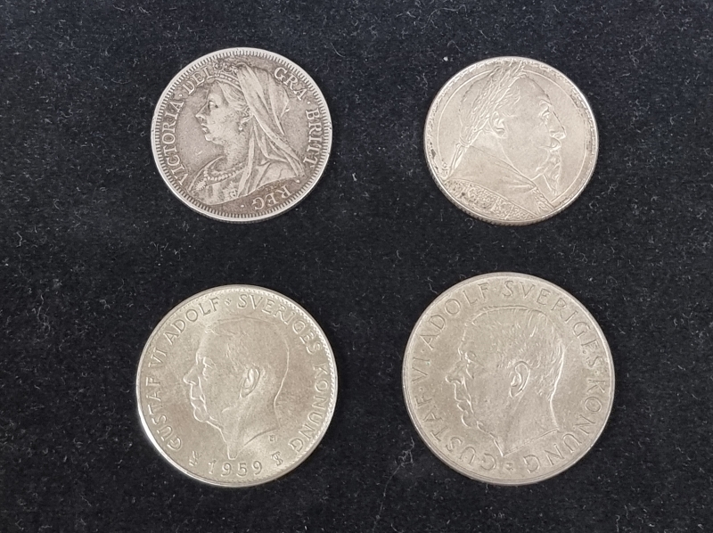 #1376 4kpl hopeakolikoita: Queen Gustav V 1932. 400-925h