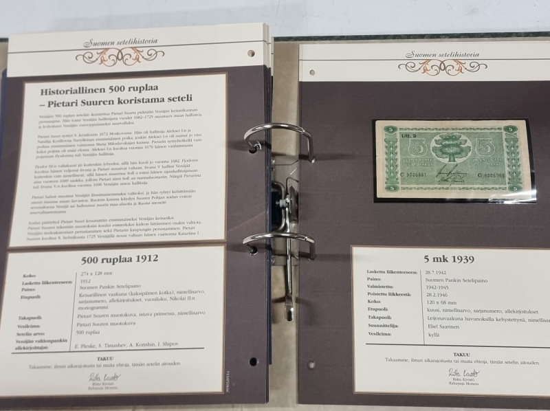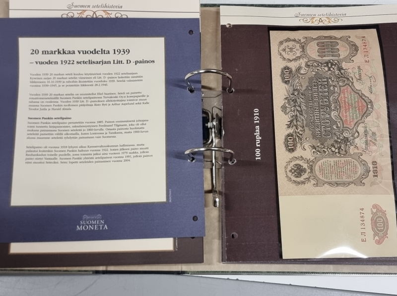 #2272 Vanhoja seteleitä kansiossa: 100 ruplaa 1910 ym.