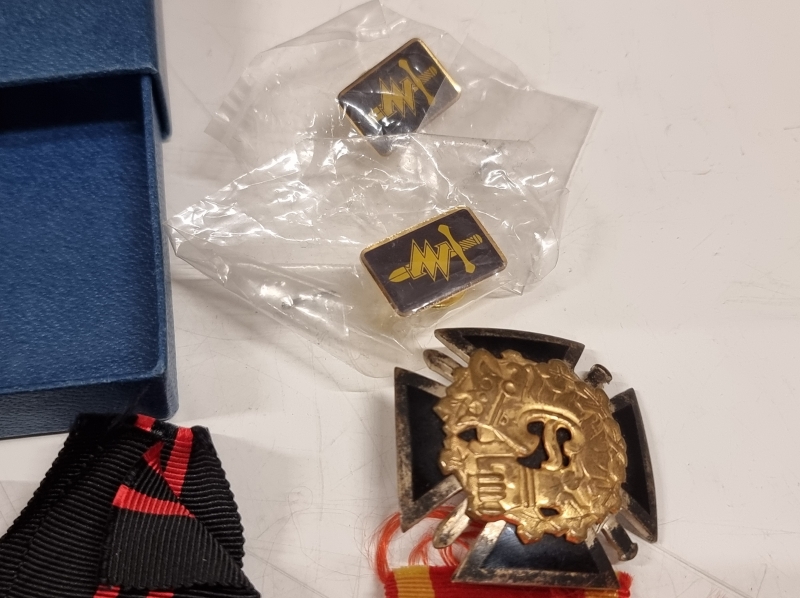 #1745 Erä kunniamerkkejä, mm. Kenttätykistön pronssimitali, 813h 15g