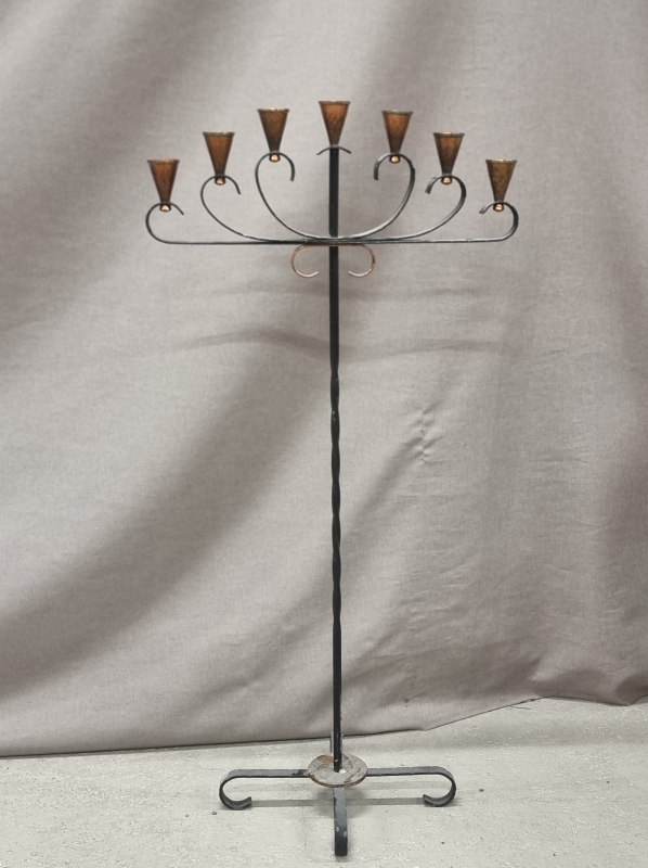 #2058 - 7-haarainen takorautainen lattiakynttelikkö irrotettavilla manseteilla.