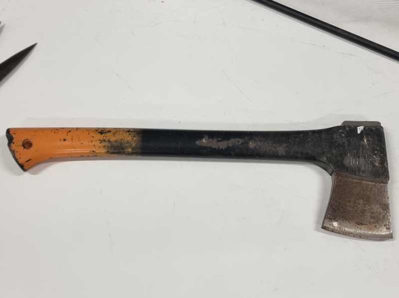 #2275 Puunkantoteline, kirves, hiilihanko ja keritsimet