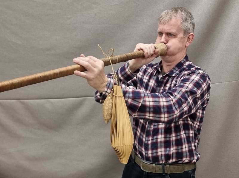 #1649 Vanha metsästyspuhallusputki + tarvikkeita