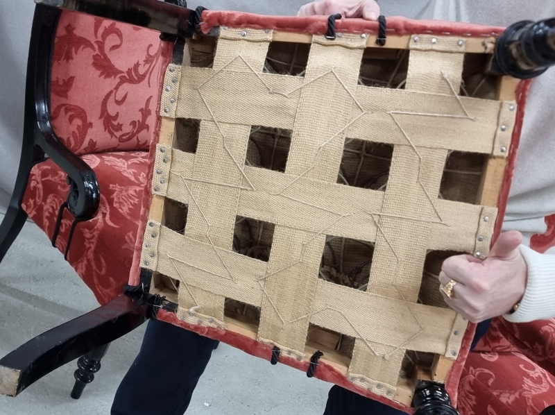 #1857 1800-luvun lopun Suomen suuriruhtinaskunnan aikainen näyttävä sohvakalusto. Kalusto verhoiltu juuri uudelleen. 7-osainen