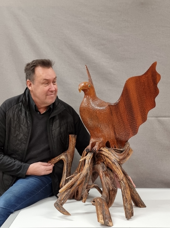 #2068 - Iso lintuaiheinen puuveistos sign. H. Nyström 1971