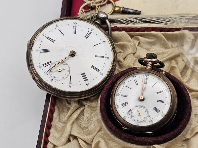 #1419 - 2kpl taskukelloja joista pienempi hopeaa