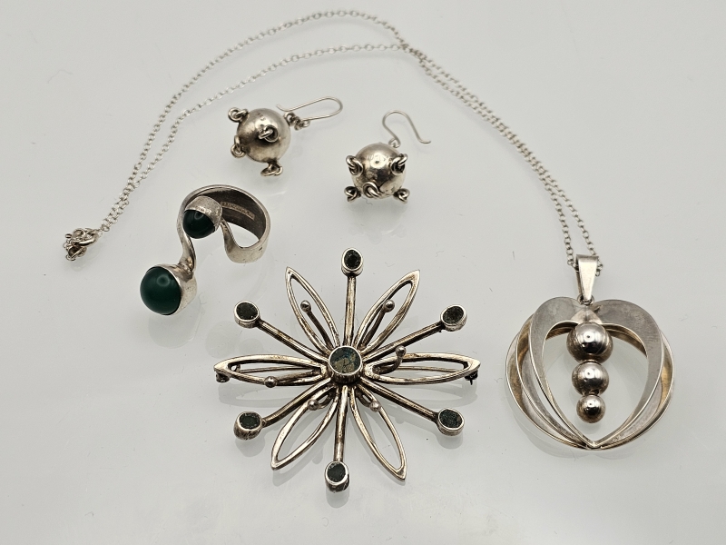 #1424 Hopeisia design-koruja, mm. Juhls Kautokeino -korvakorut