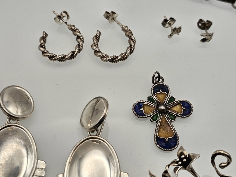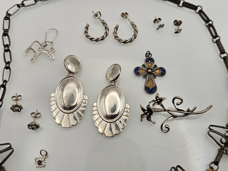#1428 Hopeinen kaulakoru + erä muita hopeakoruja