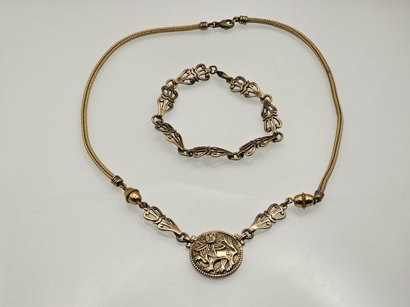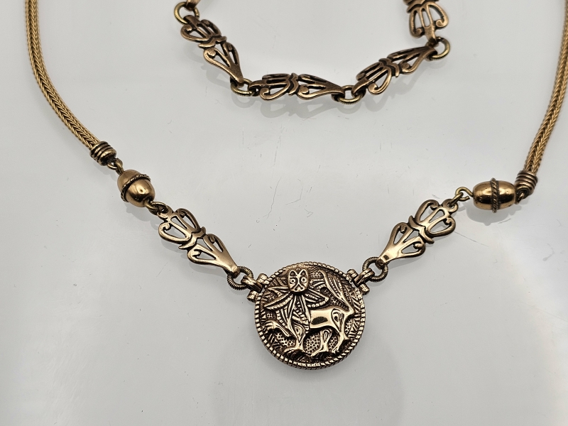 #1429 Kalevala koru, pronssiset Aurinkoleijona kaulakoru ja rannekoru