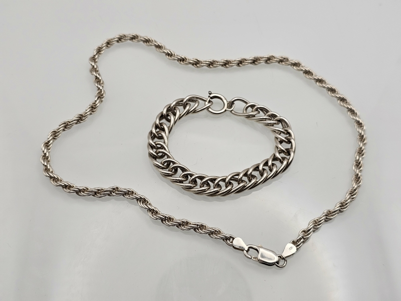 #1432 Hopeinen paksu ranneketju ja cordell kaulaketju