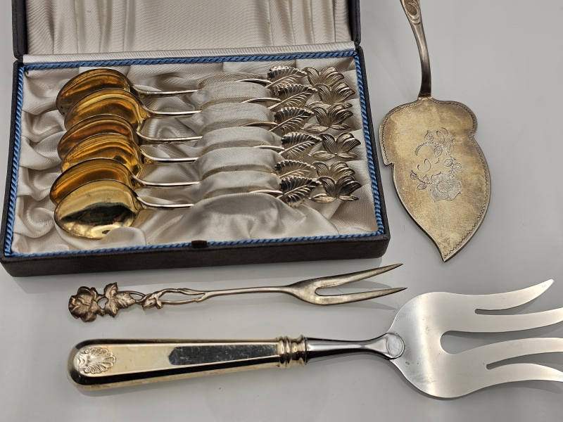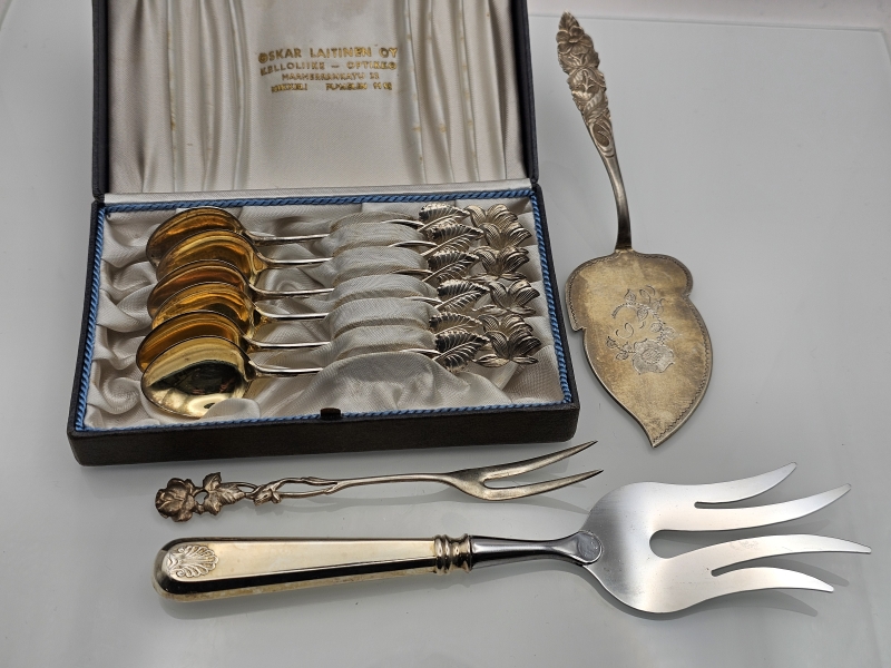#1435 Hopeisia ottimia: Mm. 6kpl kahvilusikoita, 813-830h, 99g + teräskärkinen
