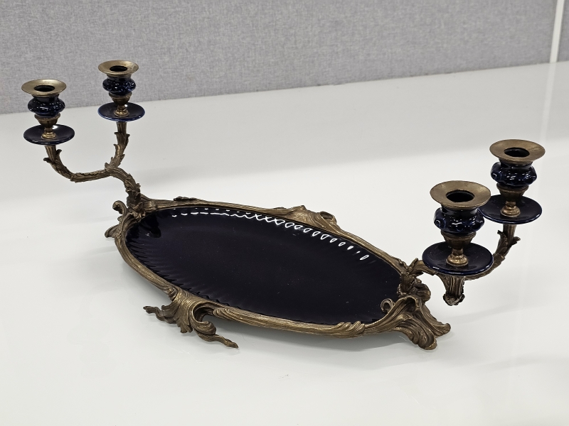 #1898 - Posliinipronssi pöytämalja kynttiläpaikoilla
