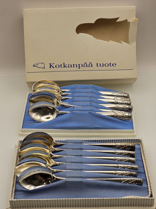 #1441 12kpl hopeisia Aino -sarjan kahvilusikoita, 830h, 129g