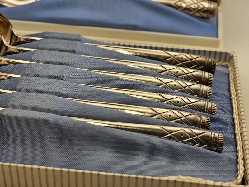 #1441 - 12kpl hopeisia Aino -sarjan kahvilusikoita, 830h, 129g