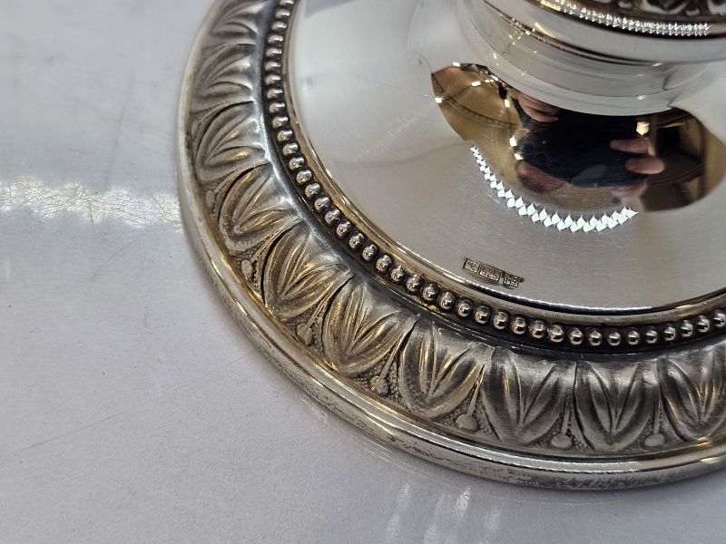 #1444 - Hopeinen Pilari -kynttilänjalka, 925h, br. 226g + laatikko