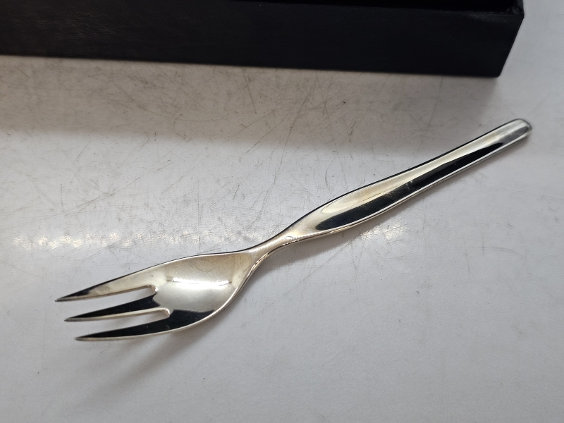 #1446 - 6kpl hopeisia Tapio Wirkkala haarukoita, 830h, 150g + laatikko