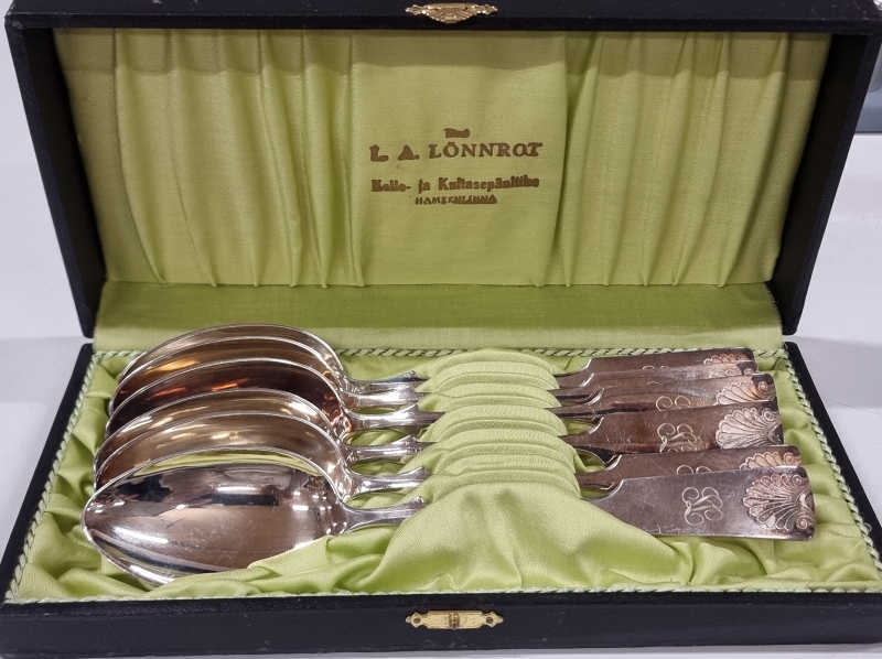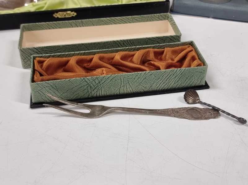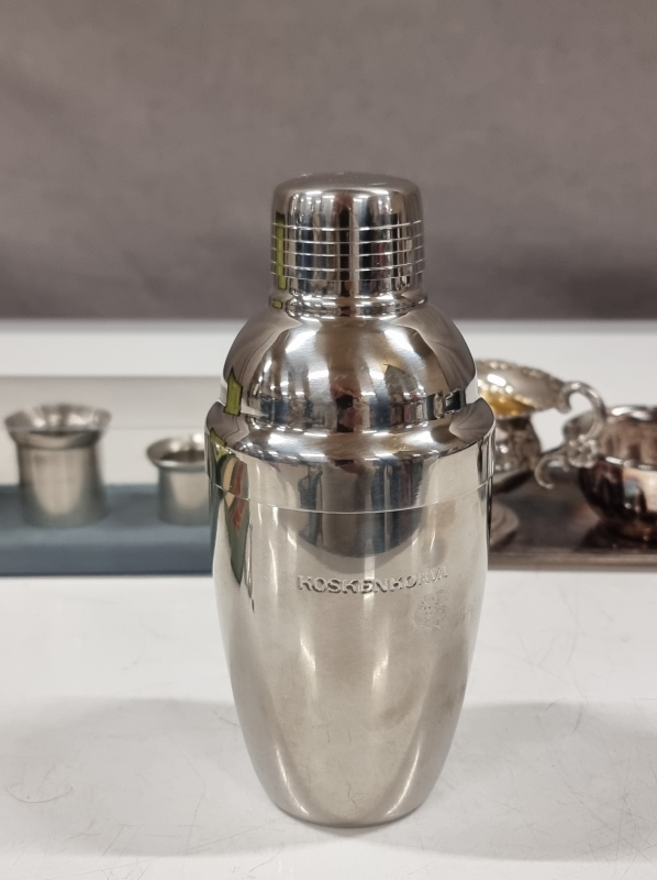 #2456 - Erä tavaraa: mm. Musla alpakkalusikat, viinamitat ja shaker