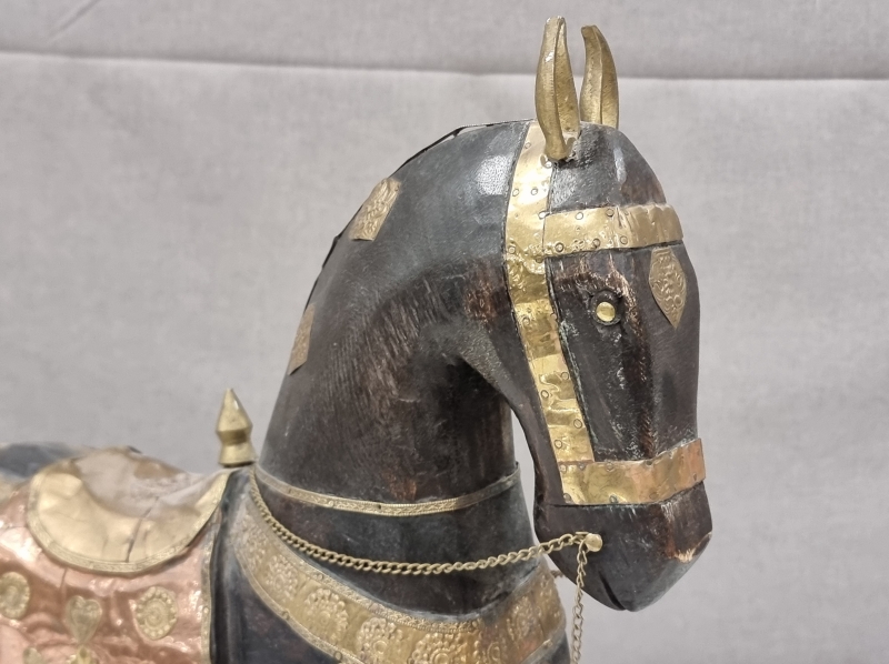 #2031 Aasialainen hevosveistos, puu/metalli