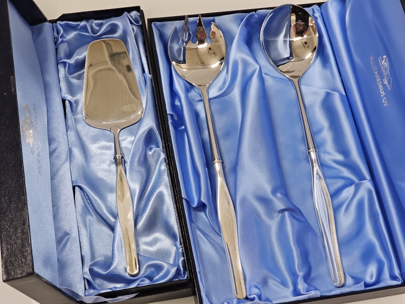 #1449 Tapio Wirkkala, hopeinen kakkulapio ja salaattiottimet, 830h, br. 210g