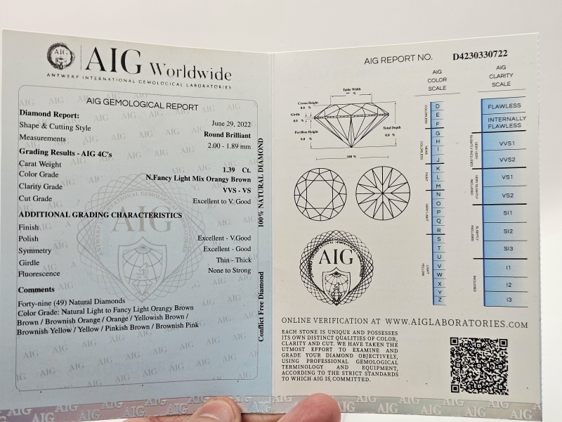 #1470 49kpl irtotimantteja AIG -todistuksilla, yhteensä 1,39ct