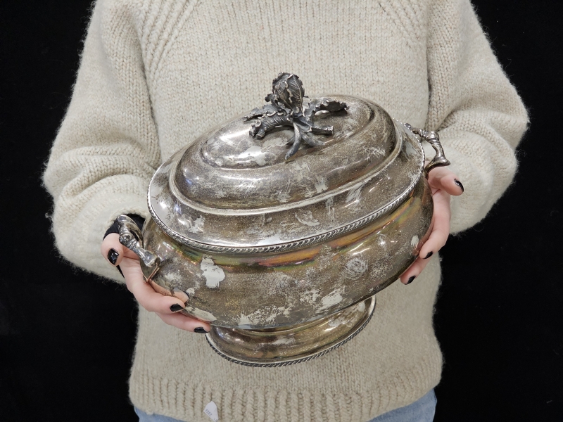 #1475 Isokokoinen hopeinen käsityönä valmistettu kannellinen astia, 925h, 2000g