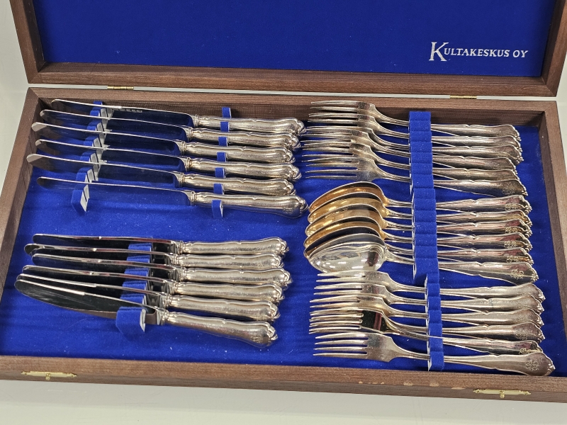 #1477 Hopeiset chippendale -aterimet laatikossa, 830h, 794g + br. 881g