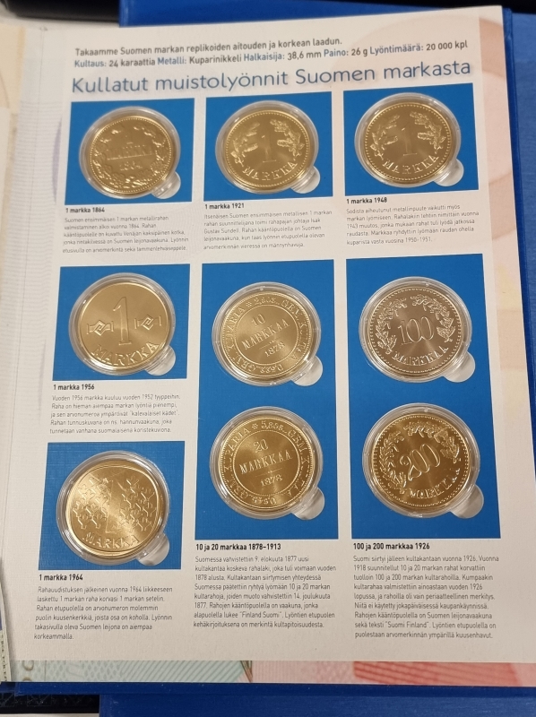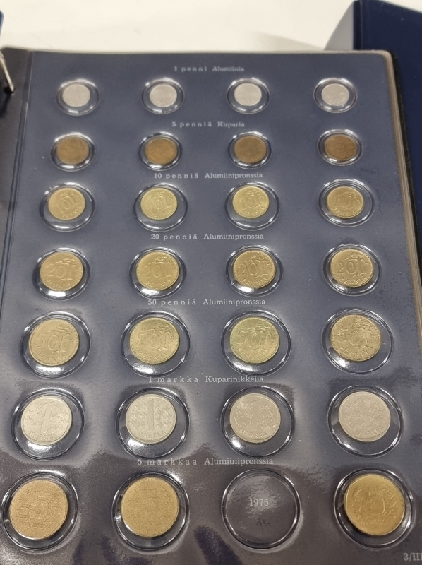 #1510 - 3 kansiollista suomalaisia kolikoita: Mm. Suomen rahahistoria 500-900h