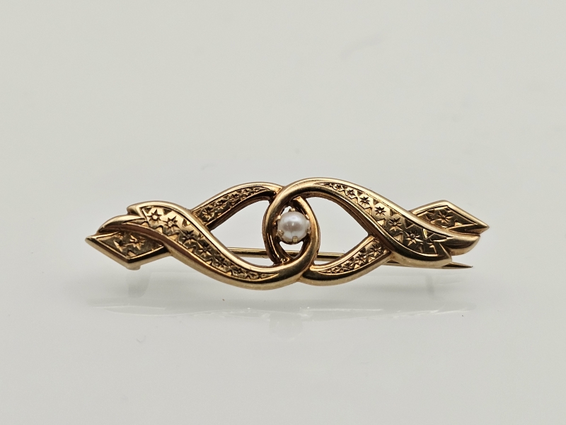 #1497 - 14k kultainen rintaneula helmellä, 2,12g