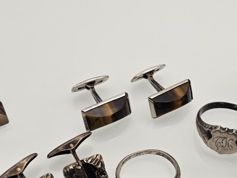 #1520 Erä hopeakoruja, mm. sormuksia emaleilla, 813-925h, br. 78g