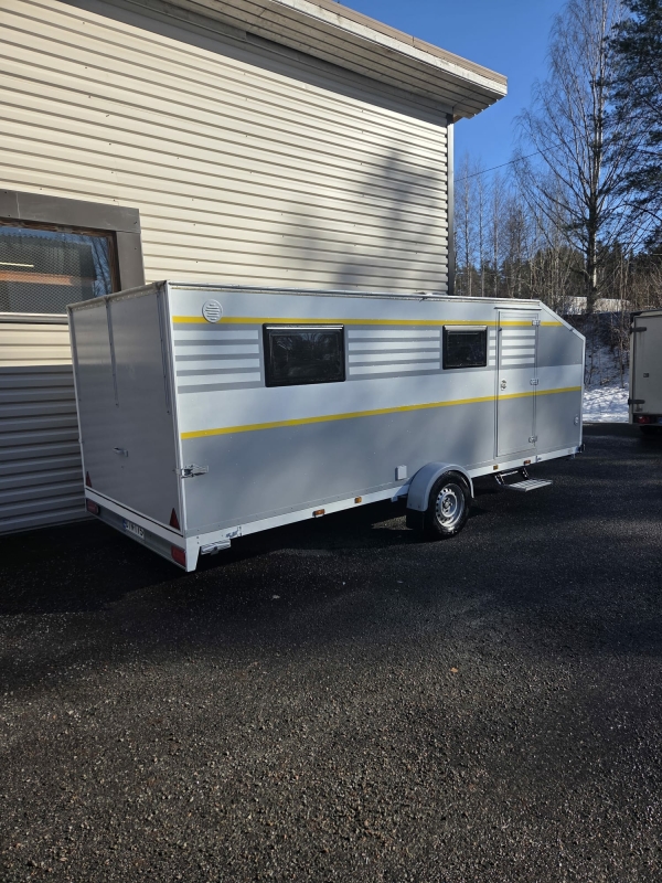 Vaunun kantavuus 500kg, kaasuton, kaikki toimii sähköllä, polttoainekäyttöinen lisälämmitin / sähkö.