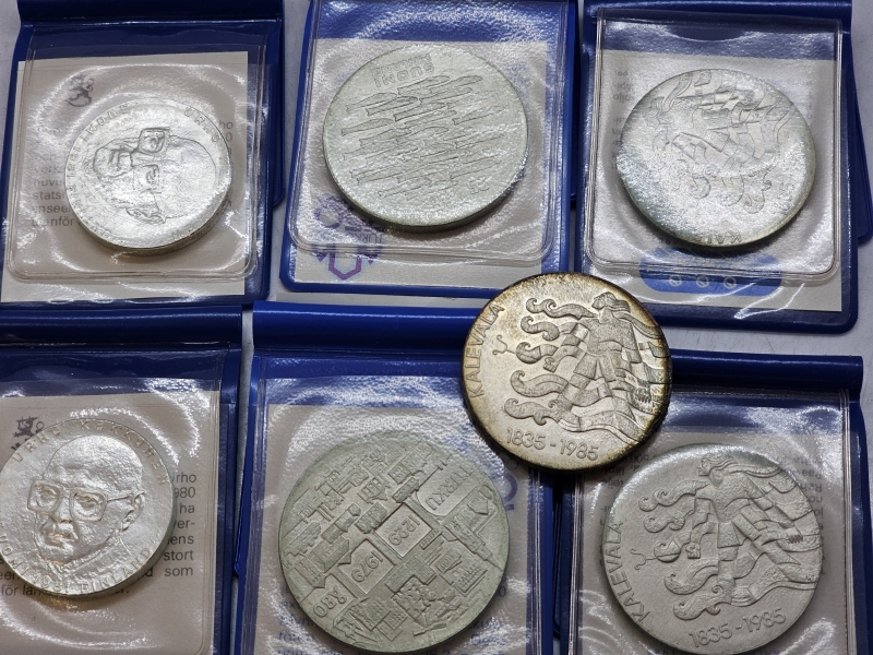 #1604 - 10kpl hopeisia juhlarahoja, 500h, 215,7g