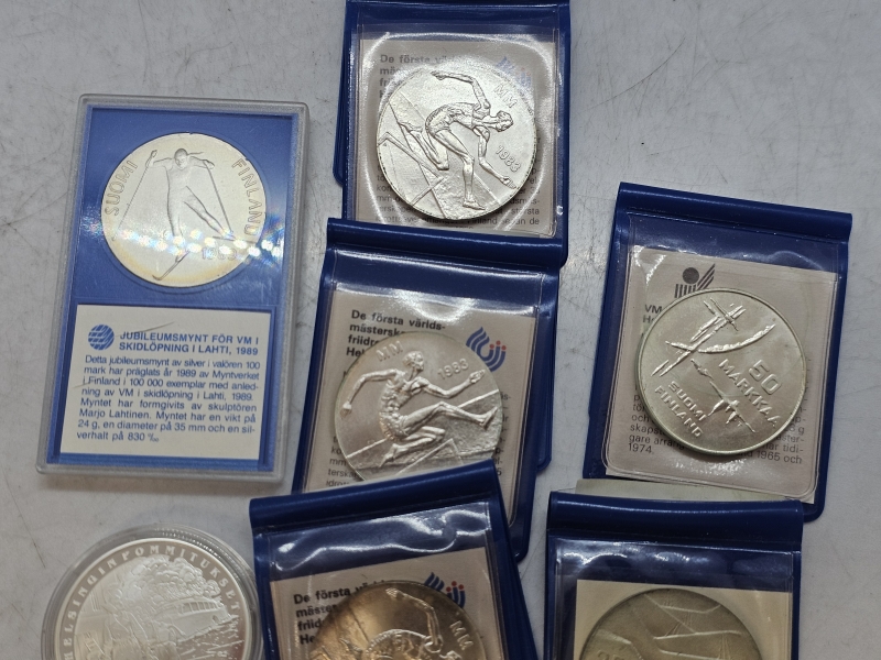 #1605 - Erä hopeisia juhlarahoja: Mm. Helsingin pommitukset, yht. 166,95g