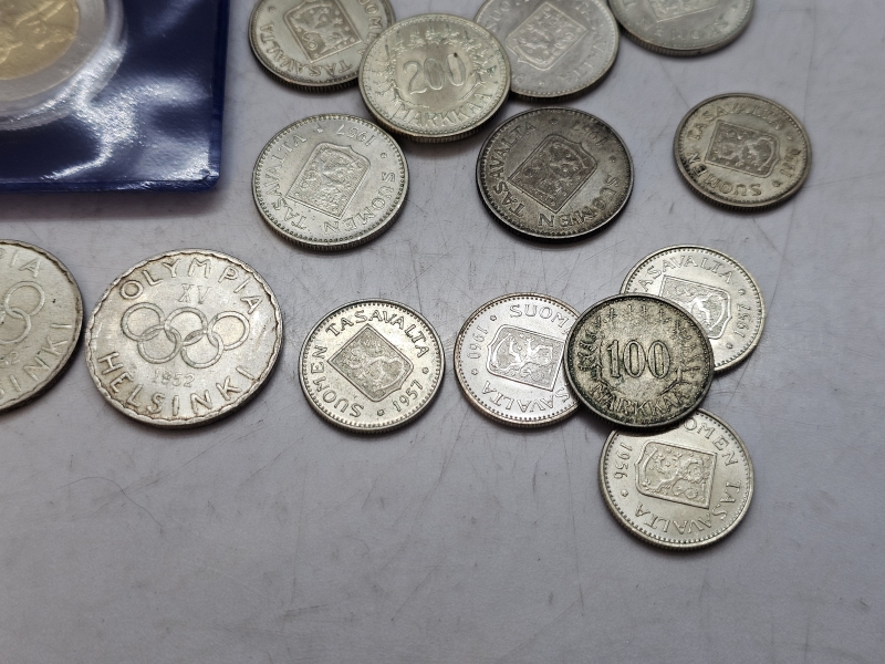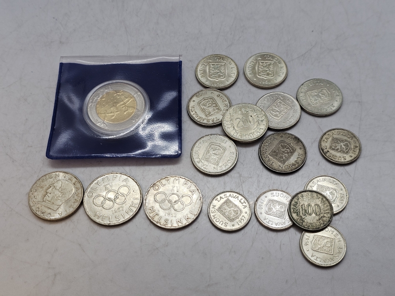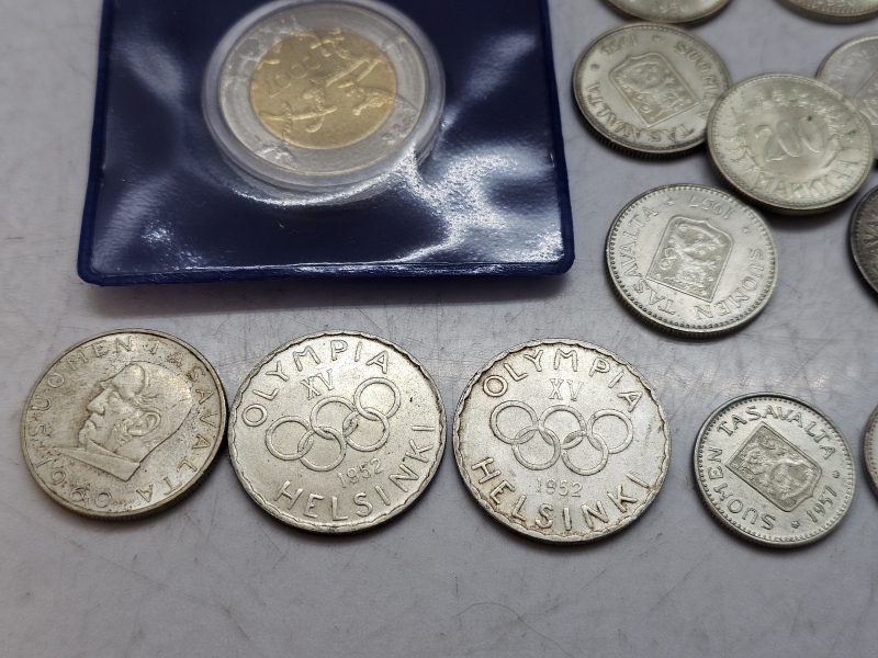 #1606 - Erä vanhoja hopeisia rahoja [mm. 2kpl 1952 500mk olympiarahoja] + 90v juhlaraha