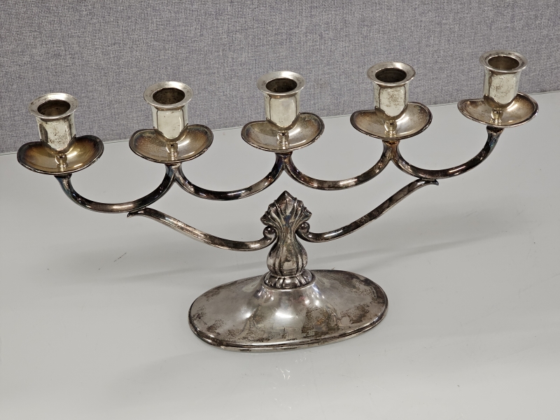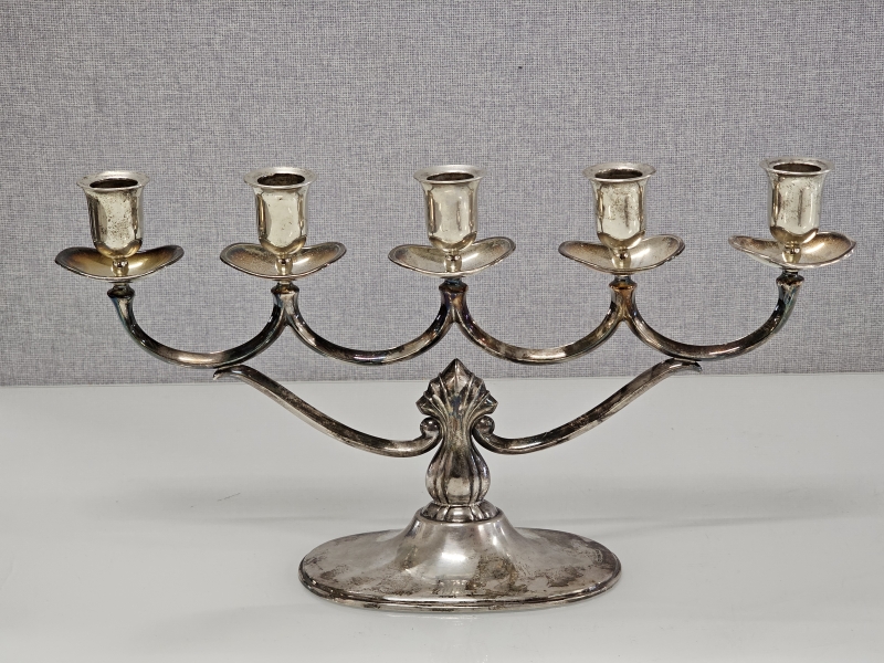 #1611 - Hopeinen kynttilänjalka viidelle kynttilälle, 813h, br. 844g