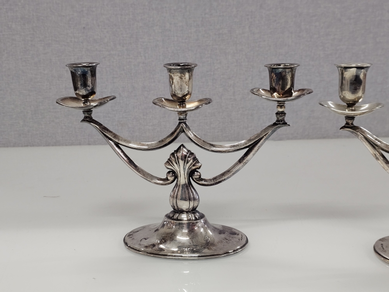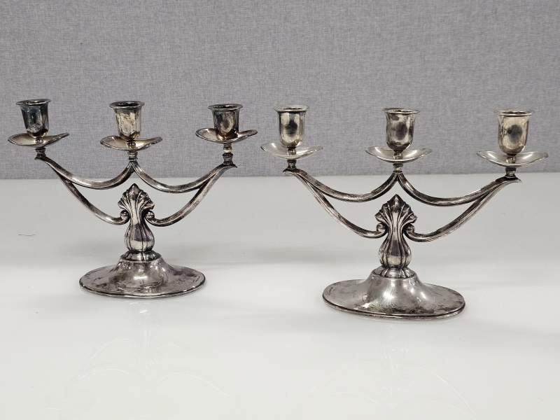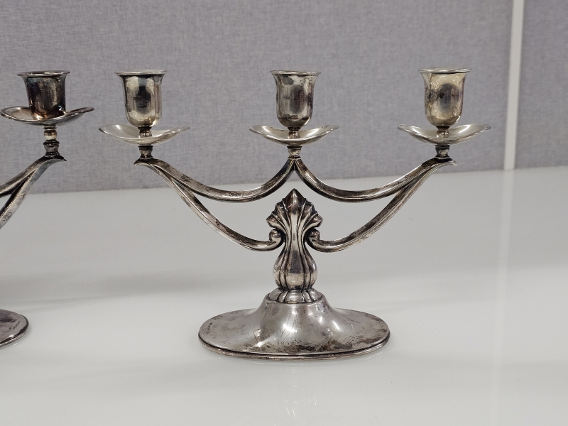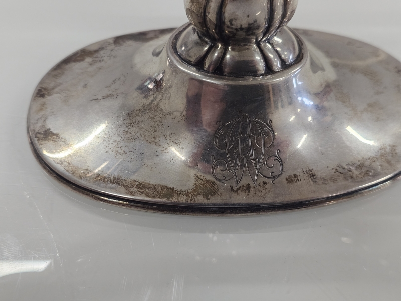 #1612 - 2kpl hopeisia kynttilänjalkoja, 813h, br. 1167g
